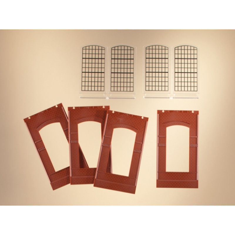 Stěny 2391A, červené, průmyslová okna L, H0, Auhagen 80518