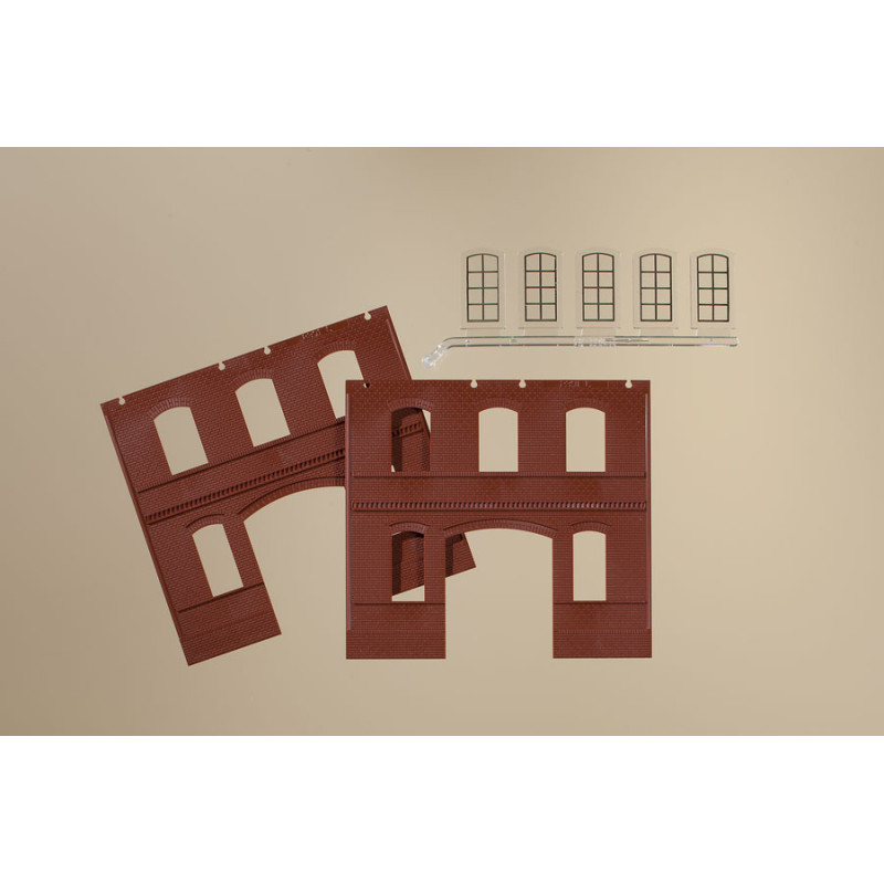 Stěny 2391C, červené, průmyslová okna L, H0, Auhagen 80523