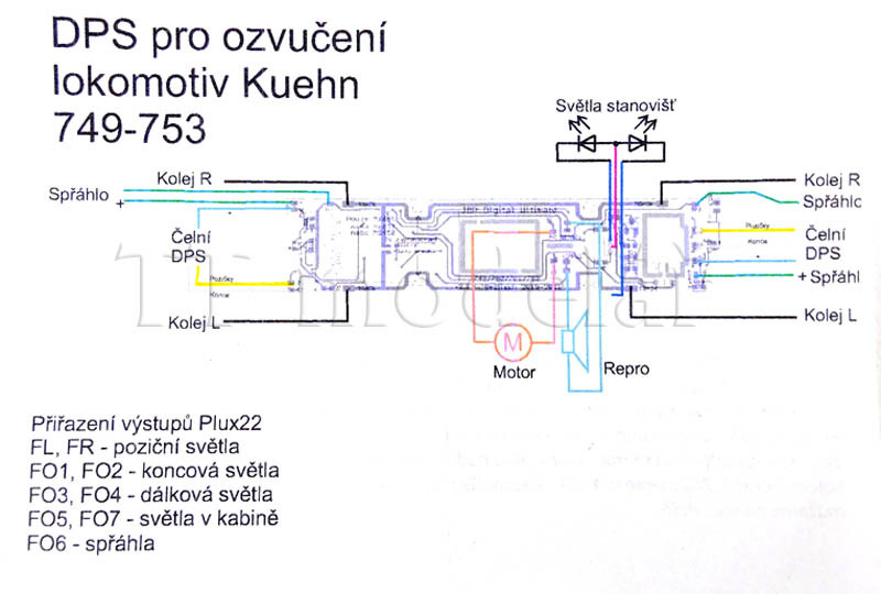 Hlavní deska plošného spoje do lok. 749-753 Kuehn, PluX22, s osvětlením kabiny, TT modelář TTM-Bed06