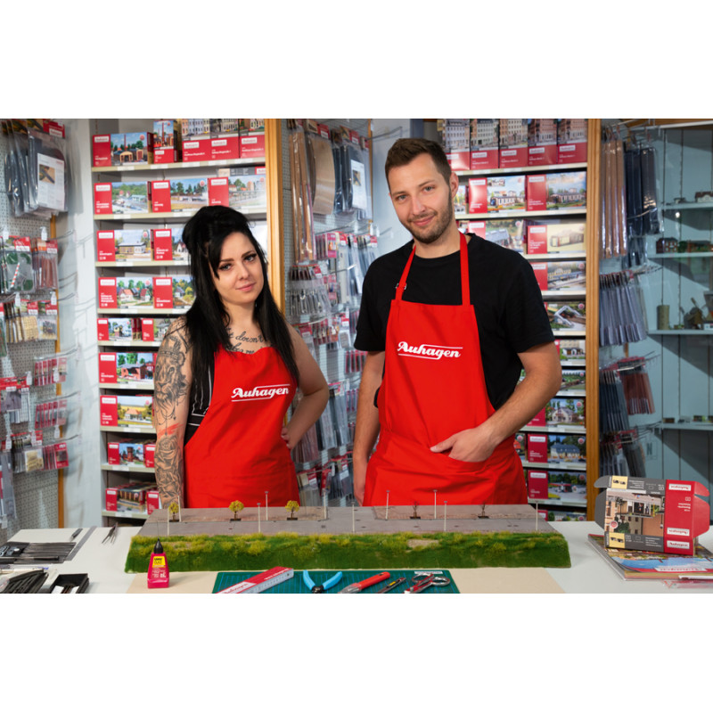 Zástěra s motivem Auhagen – perfektní přizpůsobení při práci ve stoje nebo v sedě je zaručeno pomocí nastavitelných popruhů. Materiál je 100% bavlna, snadno se udržuje a velmi dobře se nosí. Velká kapsa nabízí prostor pro nářadí i jiné předměty.