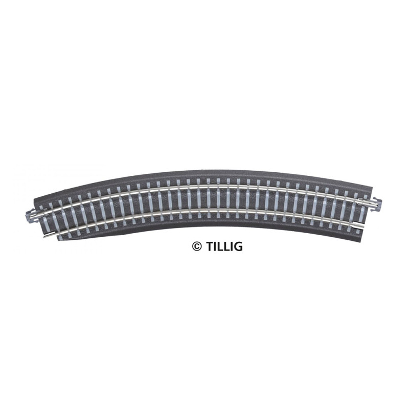 Oblouková kolej s podložím BR 11-32kli, se zkosením pro výhybku, levá, R 396 mm/30 st., šedé pražce, TT, Tillig 83774