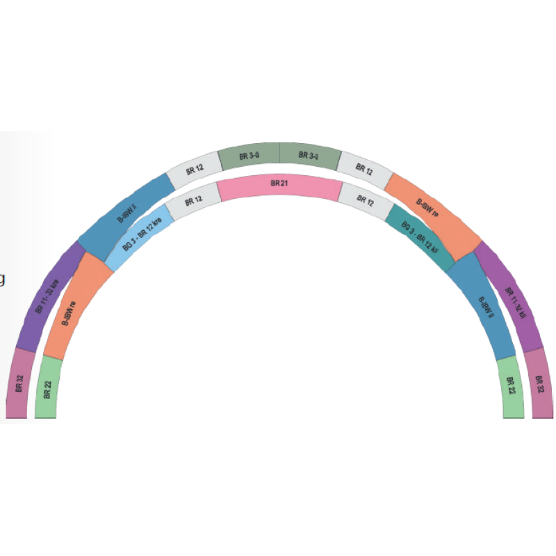 Oblouková kolej s podložím BR 3-ü, přechodová, R 396 mm/15 st., šedé pražce, TT, Tillig 83772