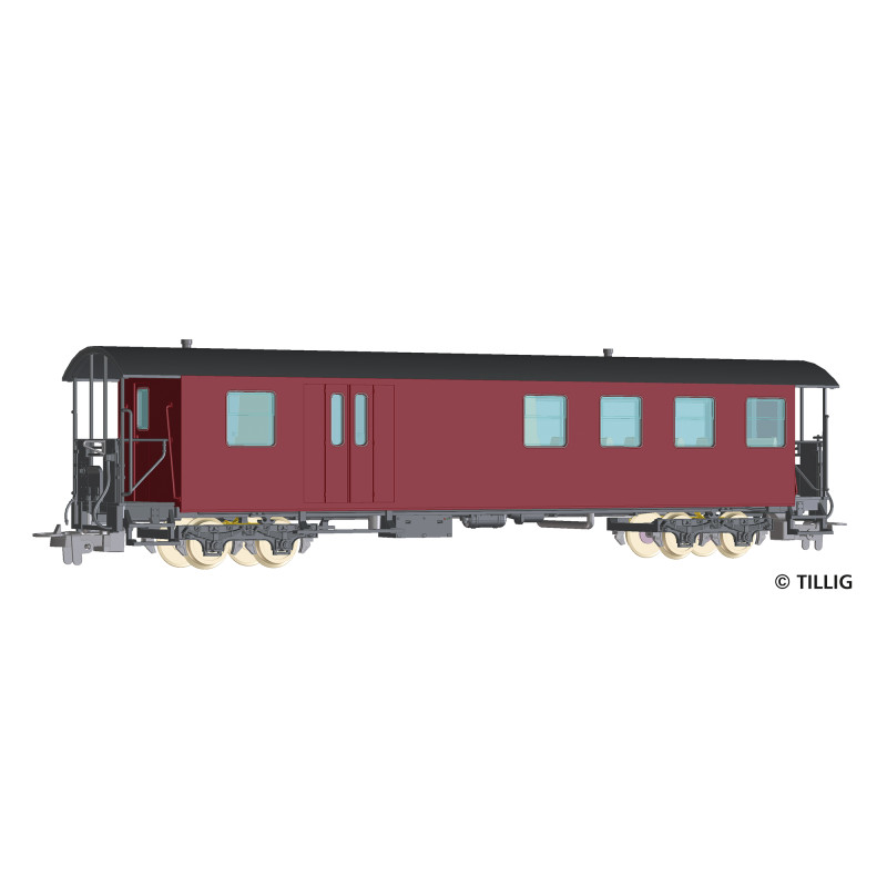 Úzkorozchodný zavazadlový vůz KBD4i, červený, DR, IV. epocha, H0e, Tillig 03940