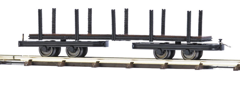 Úzkorozchodný plošinový vůz, s nákladem metrového dříví, H0f, Busch 12247