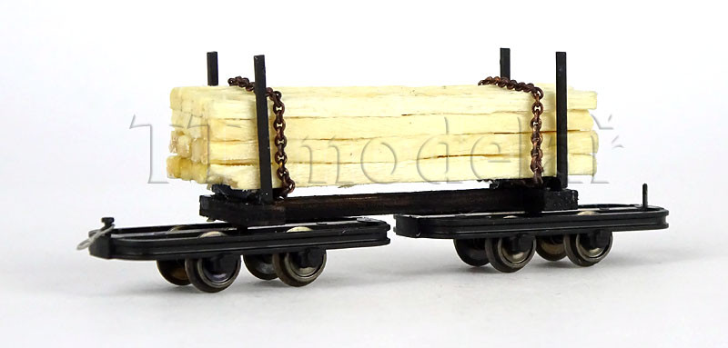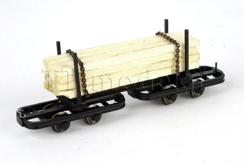 Úzkorozchodný podvozkový vůz s nákladem kmenů, H0f, Busch 12222