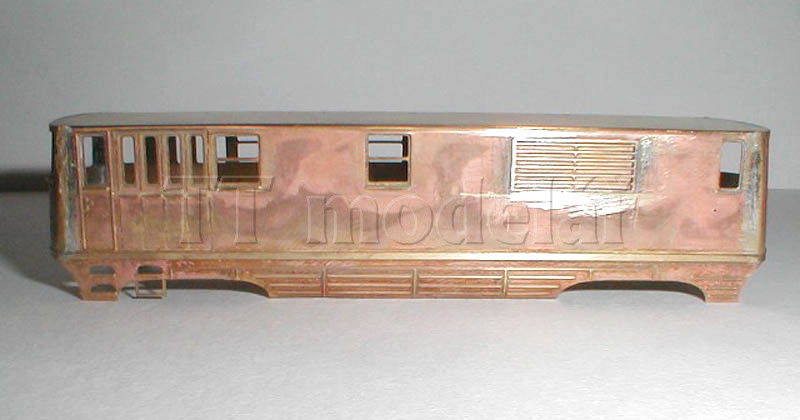 Stavebnice skříně z leptaného plechu, obtisk s pruhy a nápisy. Neobsahuje střechu a pluh.