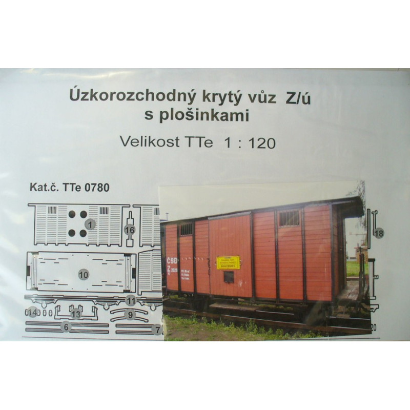 Stavebnice úzkorozchodného krytého vozu Z/ú, TTe, DK model TTe0781