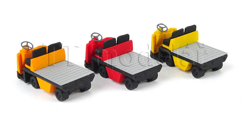 Pěkně zpracovaný model akumulátorového vozíku v provedení s plošinou a přívěsným vozíkem z resinové pryskyřice, barvený. Nepostradatelný doplněk nástupišť, poštovních dvorů, továrních dvorů, skladů.
