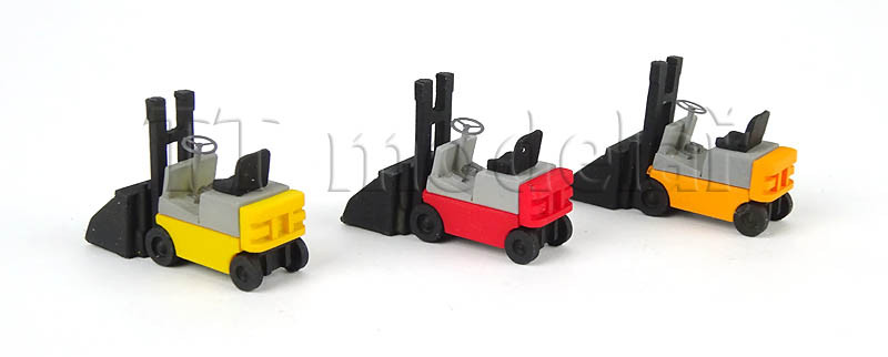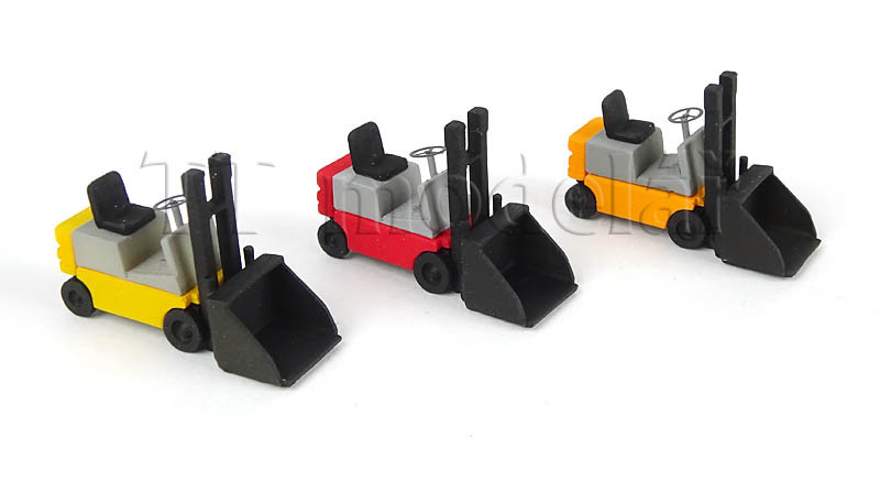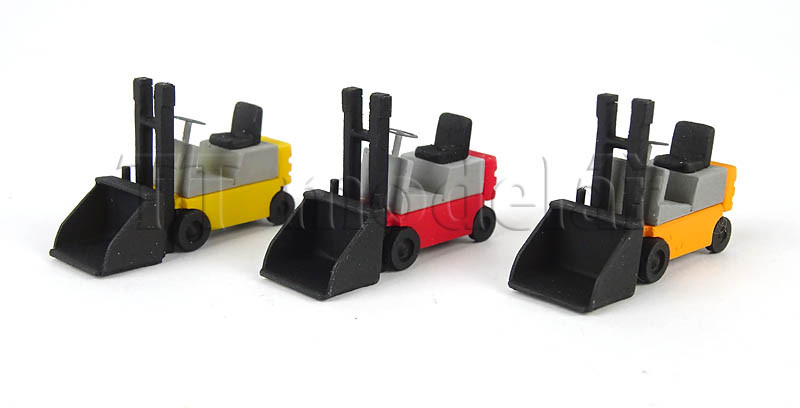 Precizně zpracovaný model vysokozdvižného vozíku v provedení s lopatou pro nabírání sypkých materiálů z resinové pryskyřice, barvený. Nepostradatelný doplněk továrních dvorů, skladů.