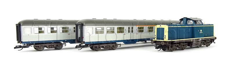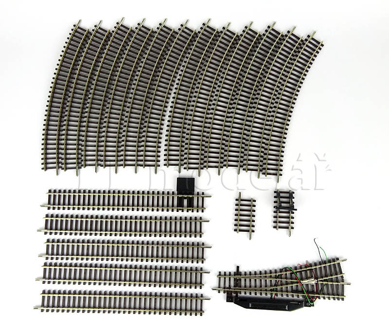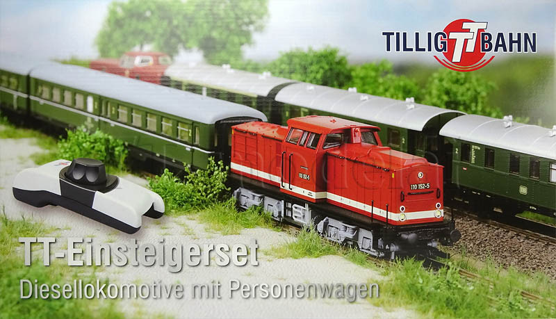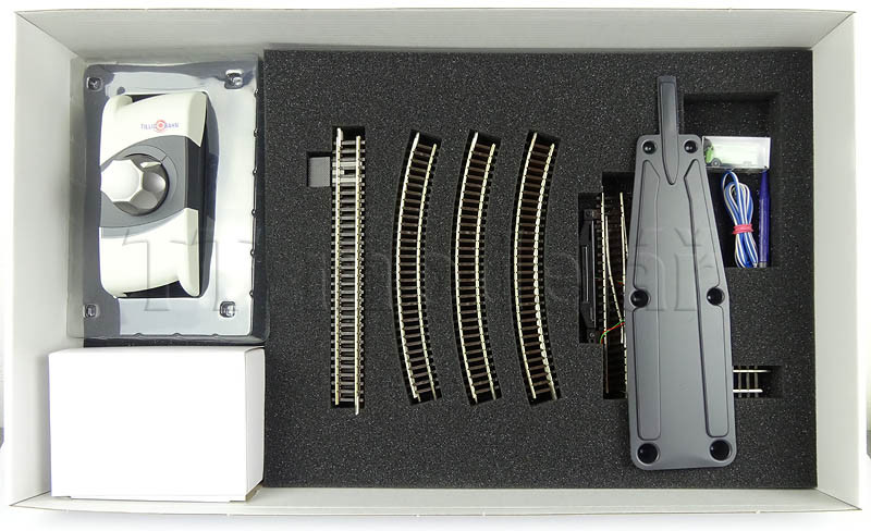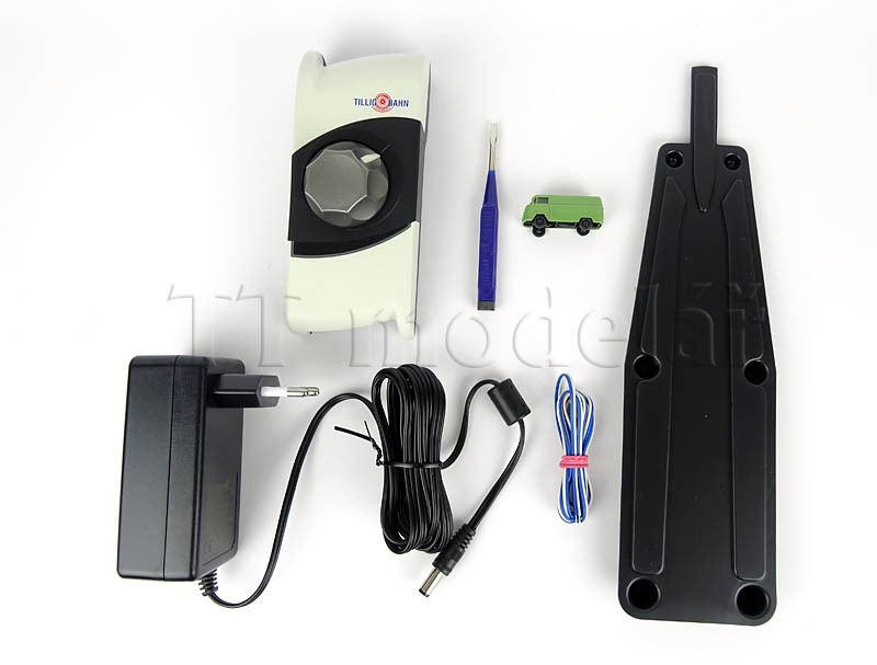 Obsah setu: kolejový ovál z modelového kolejiva s odbočnou kolejí, regulátor Tillig (bez napájení příslušenství), automobil, nakolejovač a ruční rozpojovač.