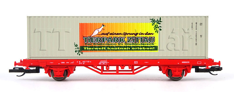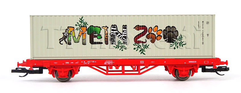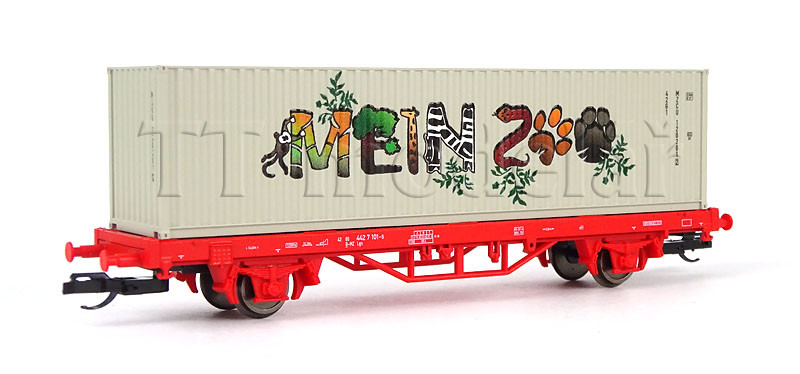 Kontejnerový vůz Lgs s jedním 40' kontejnerem "Mein ZOO", START, VI. epocha, TT, Tillig 17483