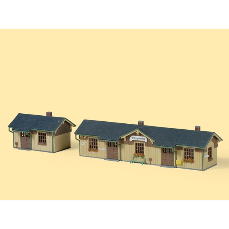 Navrženo podle původní restaurované budovy z "Windberg-Bahn" v Sasku. Signální zvon, poštovní schránka a lavice do čekárny jsou přibaleny. Tyto dřevěné budovy jsou vhodné zejména pro malá romantická kolejiště s odbočnou tratí. Přístavek je ve stejném stylu a slouží jako kůlna. Model je bez nástupiště.