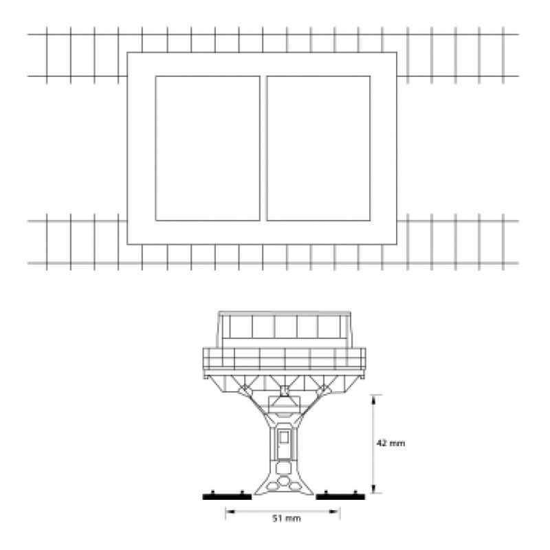 Předloha tohoto modelu je v Chemnitz Hilbersdorf. Tento typ zauhlovacího zařízení se vyskytoval na různých místech od roku 1930. Ocelová konstrukce je provedena velmi detailně. Zábradlí je vyřezávané laserem. Při použití kolejí s podložím je nutno výškově upravit základnu.Rozteč os kolejí je 51 mm. Rozměry: 130 x 27 x 82 mm.